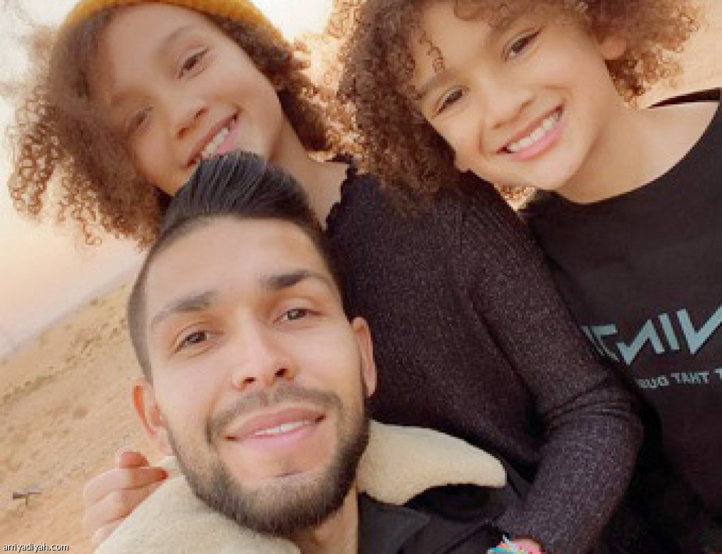 بث البرازيلي بيتروس لاعب فريق النصر الأول لكرة القدم عبر حسابه على إنستجرام صورة سيلفي مع ابنتي مايكون مواطنه وزميله خلال رحلتهم إلى البر.