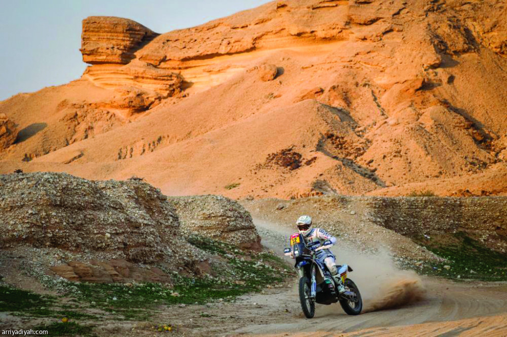 صورة التقطت أمس للفرنسي سولتريه ينطلق بدراجته خلال المرحلة الثامنة من رالي داكار السعودية 2021(المركز الإعلامي ـ رالي داكار)
