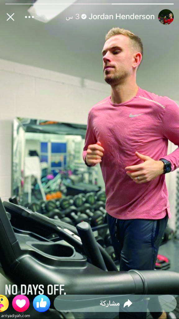 رفض الإنجليزي الدولي جوردان هندرسون قائد فريق ليفربول الإنجليزي الأول لكرة القدم الخلود للراحة، وفضل ممارسة التدريبات داخل الصالة الرياضية. وعلق على صورة في حسابه على فيسبوك أمس: “لا توجد إجازات”.