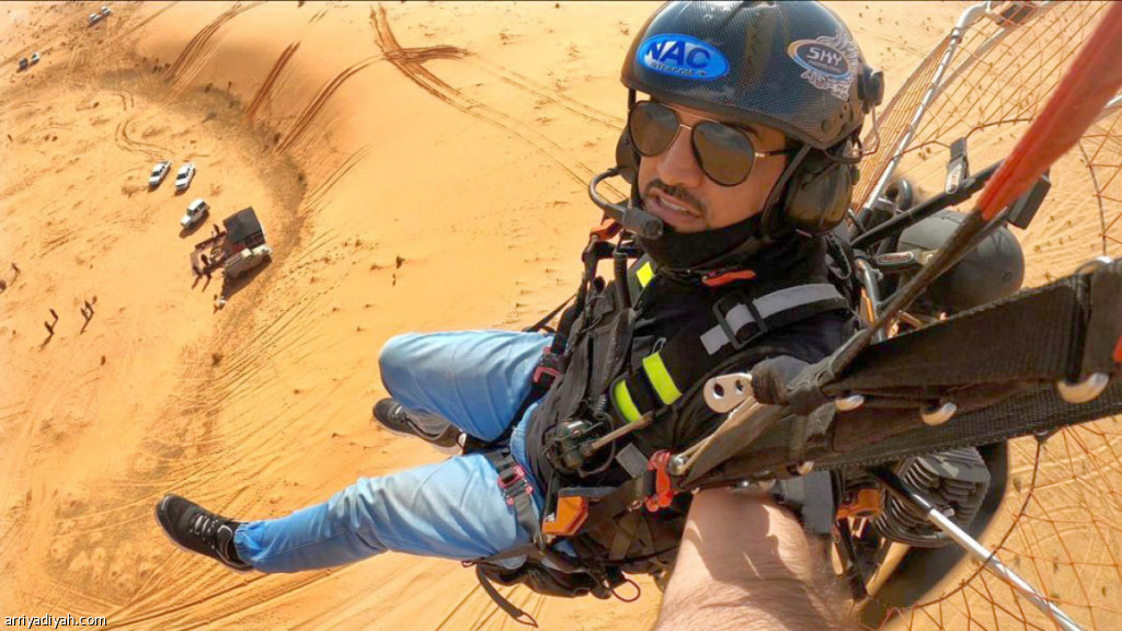 صورة التقطت لأحد محترفي الطيران الشراعي يحلق فوق الكثبان الرملية في حائل ضمن موسم شتاء السعودية (واس)