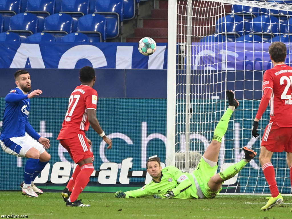 صورة التقطت أمس لنوير يصد إحدى الكرات خلال مباراة فريقه أمام شالكة (الألمانية)