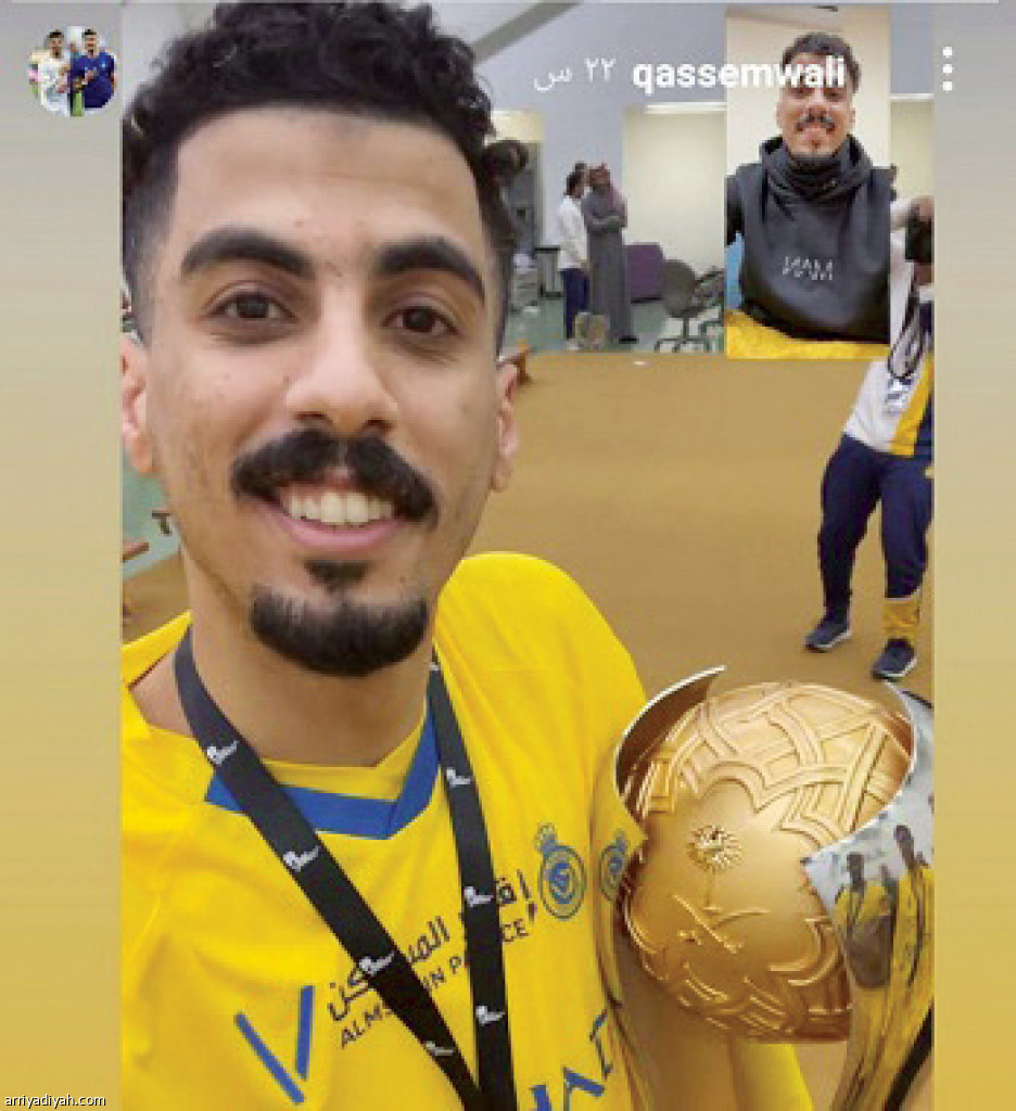 استعرض قاسم لاجامي، لاعب فريق الفتح الأول لكرة القدم، عبر حسابه على إنستجرام، صورة ظهر فيها يتابع فرحة لاعبي النصر بالفوز على الهلال مباشرة من خلال تصوير توأمه علي لاعب النصر الفرحة.