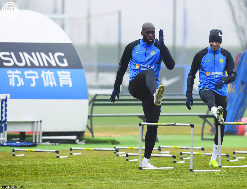 صورة التقطت أمس للمغربي أشرف حكيمي والبلجيكي روميلو لوكاكو خلال الحصة التدريبية لفريق إنتر ميلان (المركز الإعلامي ـ إنتر ميلان)