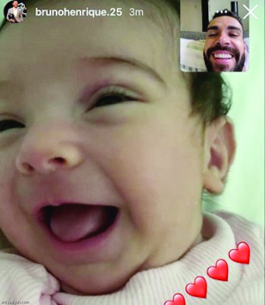 بثَّ البرازيلي برونو هنريكي، لاعب فريق الاتحاد الأول لكرة القدم، صورة في حسابه على “إنستجرام” ظهر فيه يتبادل الابتسامة مع ابنه الجديد من خلال الفيديو.