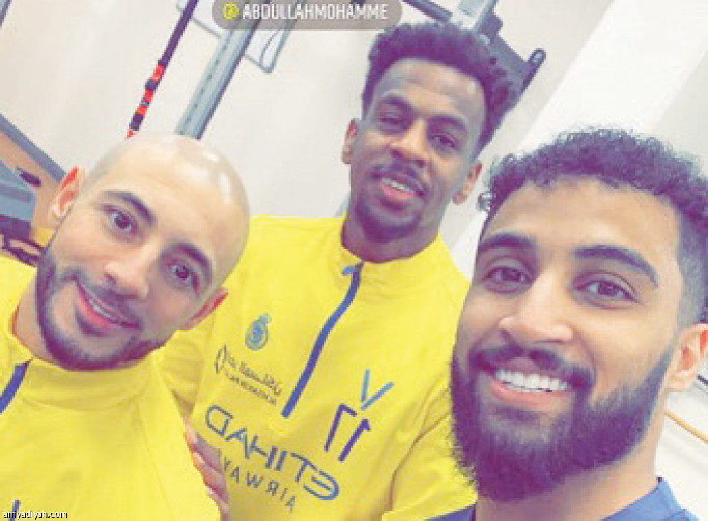 استعرض عبد الرحمن العبيد، لاعب فريق النصر الأول لكرة القدم، عبر حسابه على سناب شات، صورة سيلفي مع المغربي نور الدين أمرابط وعبد الله الخيبري زميليه، قبل انطلاق الحصة التدريبية أمس.