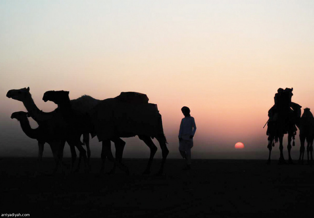 صورة التقطت أمس الأول لإبل أثناء وقت الغروب في التوقيت الذي يتم فيه إطعامها في المساء ويحضر رعاتها لحلبها وتعليفها وتكثر أصوات الخلفات أثناء السماح لصغارها بالرضاع