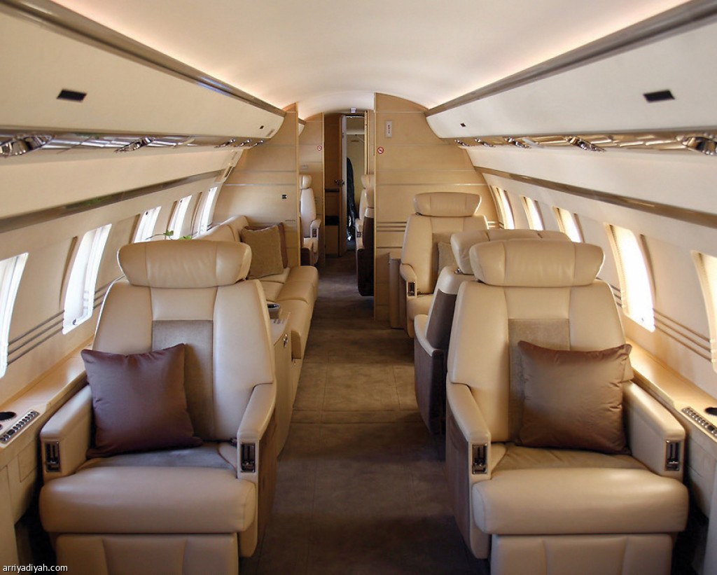 صورة التقطت داخل طائرة خاصة من طراز الطائرات بومباردير جلوبال إكسبريس التي يمتلك بيل جيتس إحداها (أرشيفية)