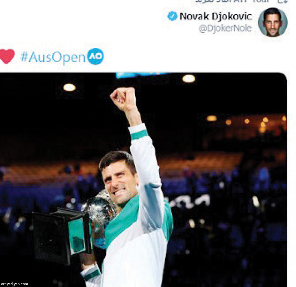 تفاعل متابعو الصربي نوفاك ديوكوفيتش، أسطورة كرة التنس، في منصات التواصل الاجتماعي مع احتفاليته بفوزه ببطولة أستراليا المفتوحة للتنس للمرة التاسعة، وذلك بعد نشره صورًا من فرحته بالانتصار.