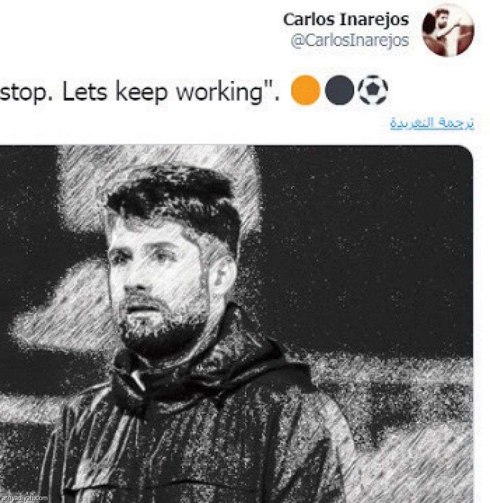 بث الإسباني كارلوس هيرنانديز، مدرب فريق الشباب الأول لكرة القدم، عبر حسابه على موقع التواصل الاجتماعي “تويتر” صورة رسمة له، وعلق قائلًا: “لا وقت للتوقف، فلنواصل العمل”.