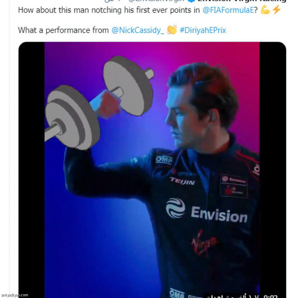 احتفل حساب فريق “إينفينشن فيرجن رايسينج” على تويتر، بإحراز الأسترالي نيك كاسيدي، سائقه، أمس، أولى نقاطه في فورمولا إي، عندما شارك في الجولة الثانية لسباق الدرعية.
