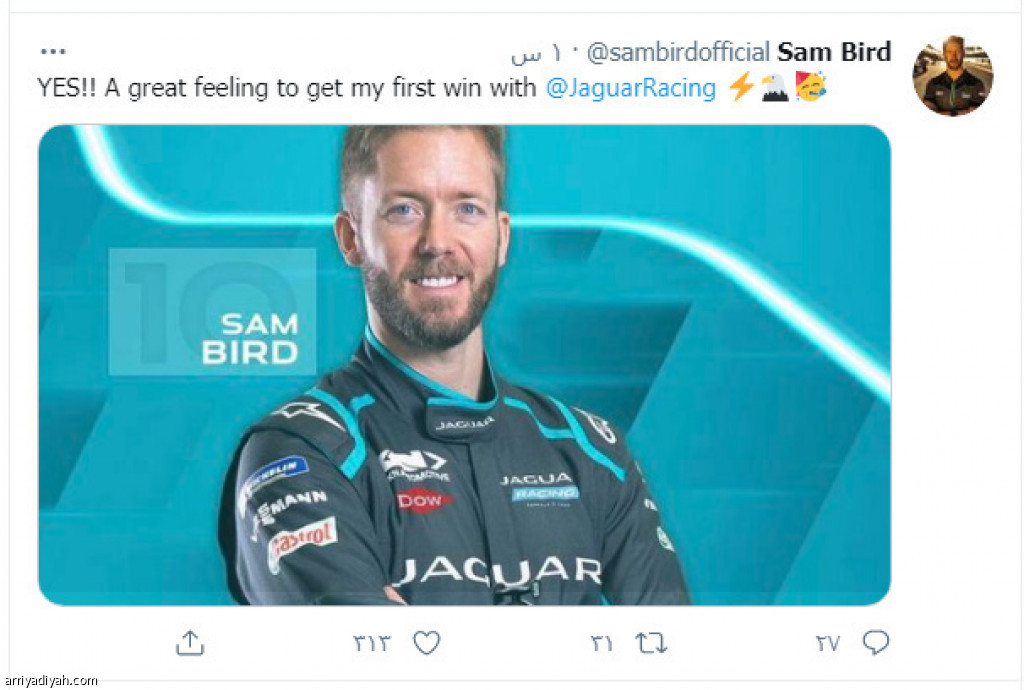 شكر البريطاني سام بيرد، سائق فريق جاكوار راسينج، فريقه على الجهد الكبير الذي بذله، أمس، وأثمر عن فوزه بالجولة الثانية لسباق فورمولا إي الدرعية للموسم الثاني على التوالي.