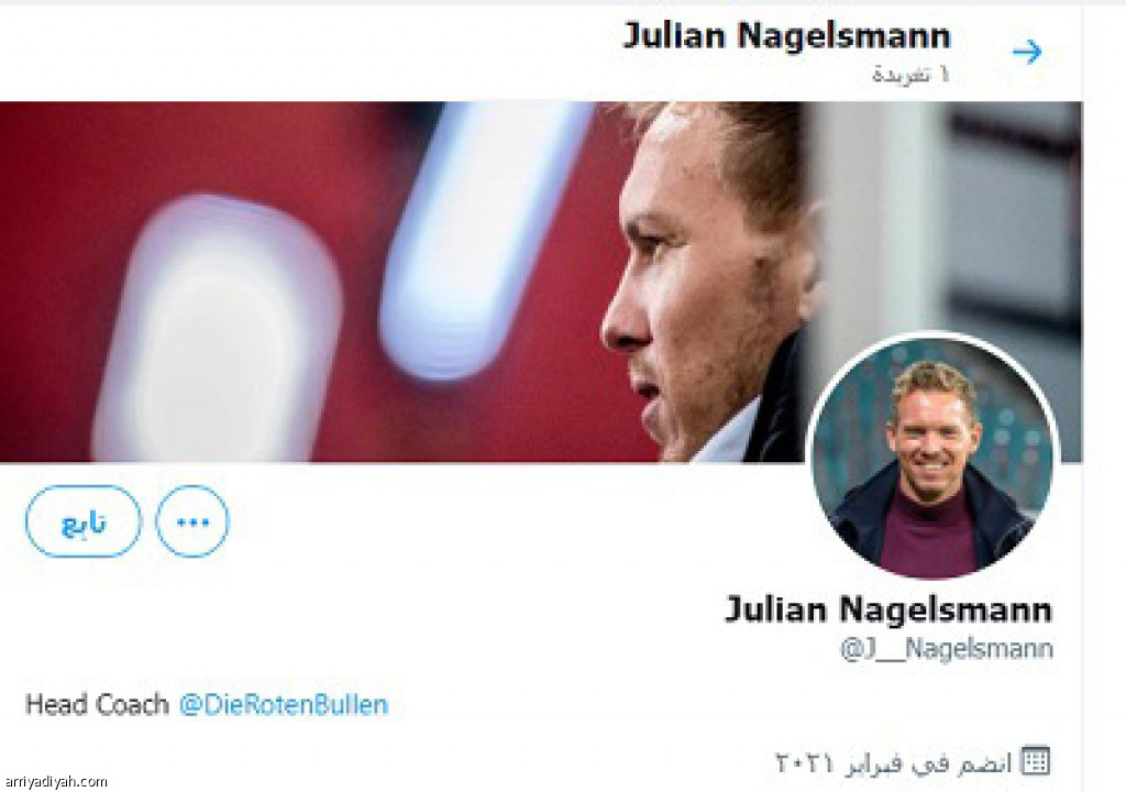 دشن يوليان ناجلسمان، مدرب فريق لايبزيج الألماني لكرة القدم، أمس، حسابًا في موقع التواصل الاجتماعي تويتر. وقال ناجلسمان في أول تغريدة له: “كانت لدي تجربة سابقة في إنستجرام وفيسبوك، لكنني أخطأت بتكوين شعور صحيح عن وسائل التواصل الاجتماعي، وابتعدت عنها”. وأضاف “أريد منح الجماهير فرصةً للتعرف عليَّ عن قرب”.