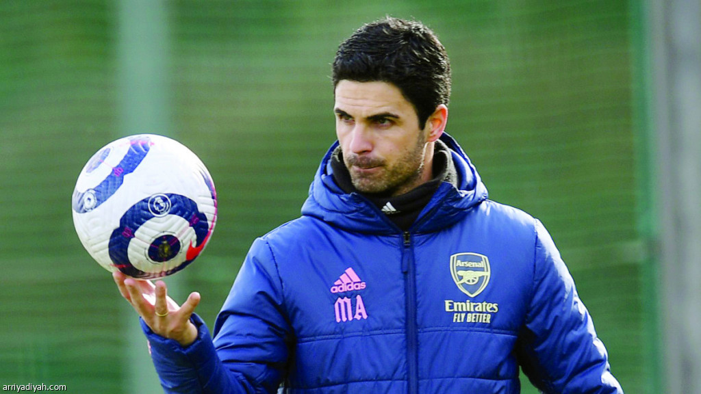 صورة التقطت أمس للإسباني أرتيتا مدرب فريق أرسنال خلال التدريبات الجماعية (المركز الإعلامي - أرسنال)