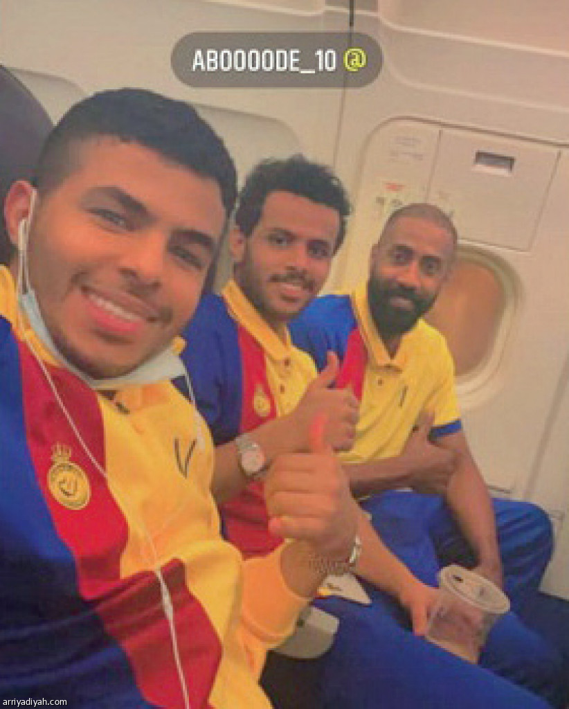 احتفى عدد من لاعبي فريق النصر الأول لكرة القدم بوجود يحيى الشهري، زميلهم في الفريق، لحضوره معهم للمرة الأولى في رحلاتهم، وذلك داخل الطائرة التي أقلتهم إلى الدمام أمس لمواجهة الاتفاق اليوم. ونشر وليد عبد الله مقطع فيديو، في حسابه على “سناب شات”، رحب من خلاله بوجود الشهري بينهم، وأيده عبد الفتاح عسيري وعبد الله مادو بعبارات ترحيبية أيضاً، بينما كان الشهري مبتسمًا ومعبرًا عن سعادته بذلك.
