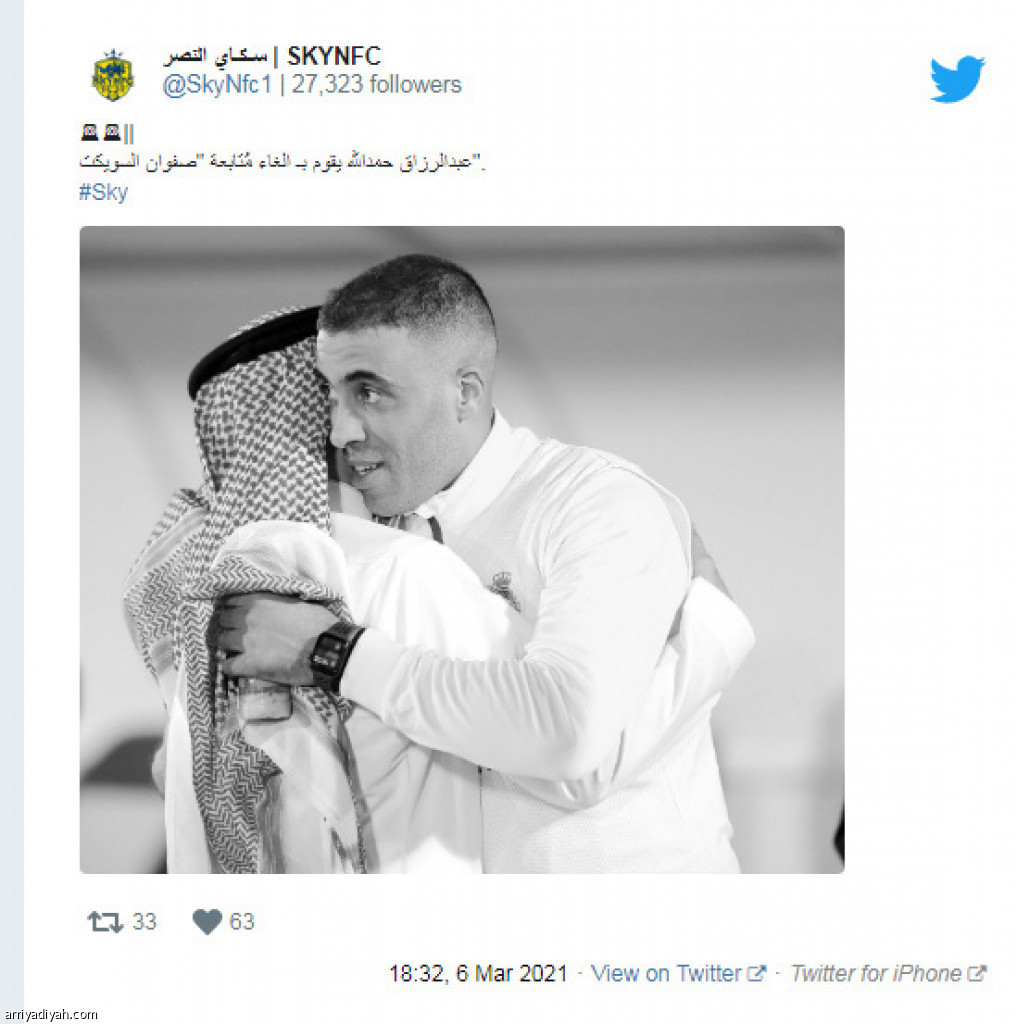 كما تفاعل أيضًا النصراويون مع خبر إلغاء حمد الله متابعة السويكت على تويتر، الذي ظهر أمس على حساب “سكاي النصر” الذي يتابعه 27 ألفًا. وكانت التعليقات متباينة، حيث انتقد البعض تصرف اللاعب ووصفوه بالمتمرد، والذي نسي أفضال النادي عليه، فيما أثنى آخرون عليه. لكن هناك من تساءل عن سر التغريدة وتوقيتها ووصفها بالمثيرة للجدل، وأن من حق أي شخص متابعة أو إلغاء أي حساب، دون أن يكون هناك أي مشكلة مع صاحبه.