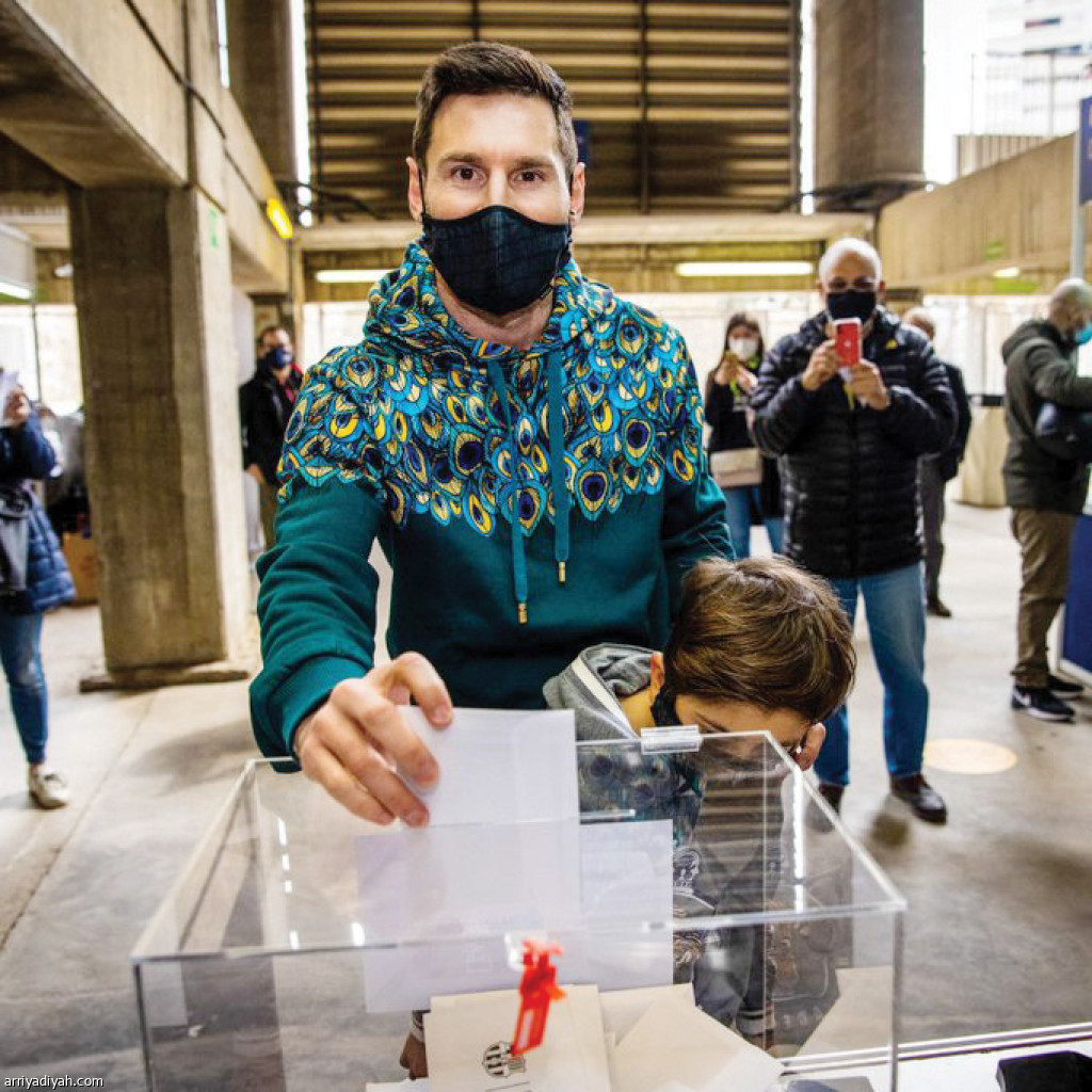 أدلى لاعبو فريق برشلونة الأول لكرة القدم بأصواتهم في انتخابات النادي لاختيار رئيس جديد خلفًا لجوسيب بارتوميو المستقيل.. وفي الصورة التي التقطت أمس الأرجنتيني ليونيل ميسي لحظة الإدلاء بصوته في صندوق الاقتراع ويظهر ابنه إلى جانبه