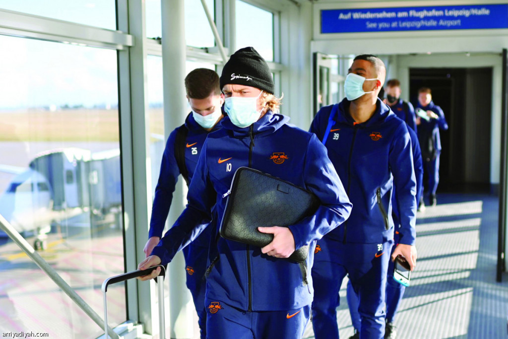 صورة التقطت أمس للاعبي لايبزيج الألماني لدى عودتهم من بودابست العاصمة المجرية بعد مباراة ليفربول (المركز الإعلامي ـ لايبزيج)
