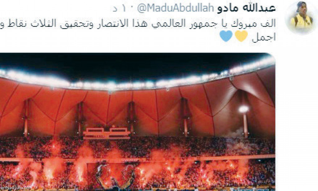 وعد عبد الله مادو، قائد فريق النصر، الجماهير بمستقبل أفضل، وذلك في تغريدة عبر حسابه على “تويتر” بعد الانتصار على الأهلي، مضيفًا “ألف مبروك يا جمهور العالمي هذا الانتصار وتحقيق الثلاث نقاط.. مستقبل أفضل”.