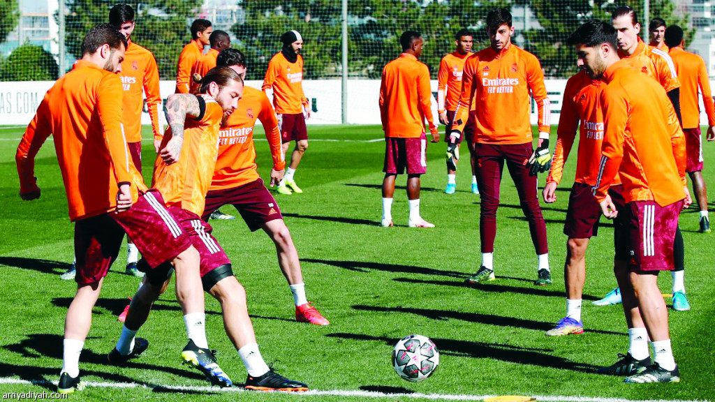 صورة التقطت أمس للاعبي فريق ريال مدريد خلال التدريبات الجماعية استعدادًا للقاء أتلاتنا اليوم (المركز الإعلامي ـ ريال مدريد)