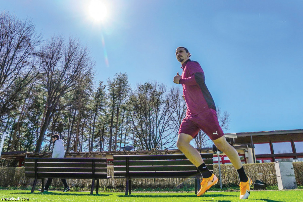 صورة التقطت أمس لإبراهيموفيتش أثناء الحصة التدريبية مع فريقه (المركز الإعلامي ـ ميلان)