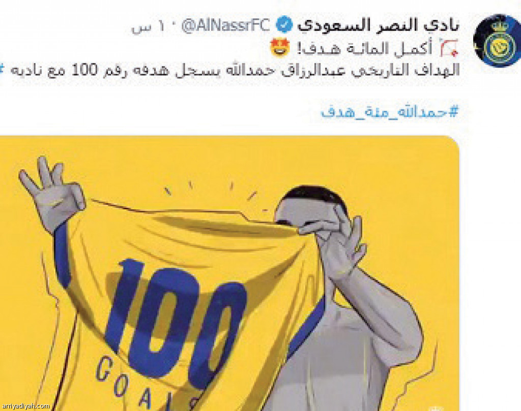وتصدر المهاجم الترند السعودي بعد وصوله إلى الهدف رقم 100 خلال مسيرته مع الأصفر، من خلال #حمداللهميههدف، والذي اكتسح التفاعل خلال فترة وجيزة من تدشينه، وأصبح الأكثر نشاطًا بعدما بلغت تغريداته أكثر من 30 ألفًا، حيث احتفت الجماهير النصراوية بإنجازاته من خلال تغريدات الثناء والإشادة.