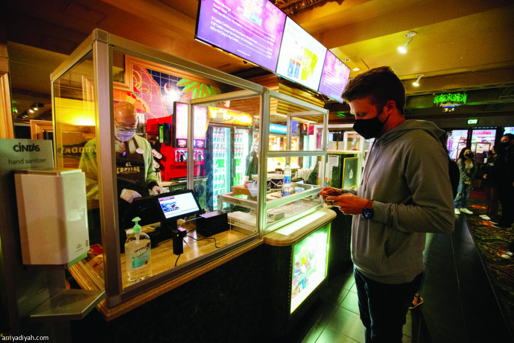 صورة التقطت أمس لرجل يقف أمام أحد المحال التجارية قبل دخوله إلى السينما في لوس أنجليس(رويترز)