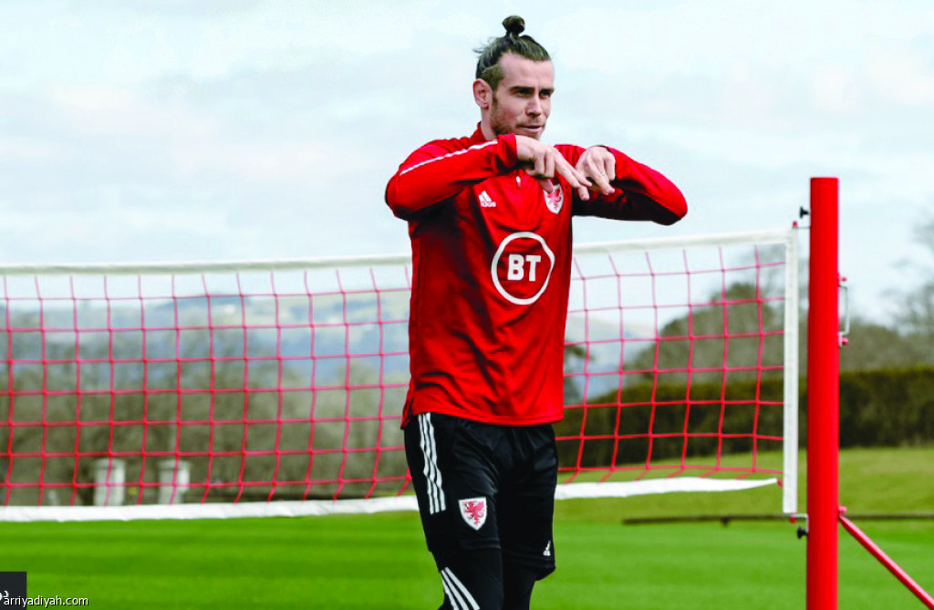 صورة التقطت أمس لبيل أثناء الحصة التدريبية لمنتخب بلاده وإلى جواره روبرت بيدج مدربه (المركز الإعلامي - منتخب ويلز)