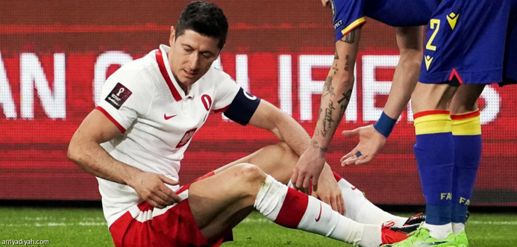 وتعرض ليفاندوفسكي للإصابة في ركبته اليمنى خلال مباراة فريقه ضد سان مارينو، الأحد، بعد أن سجل هدفين خلالها قبل أن يخرج في الدقيقة 63.