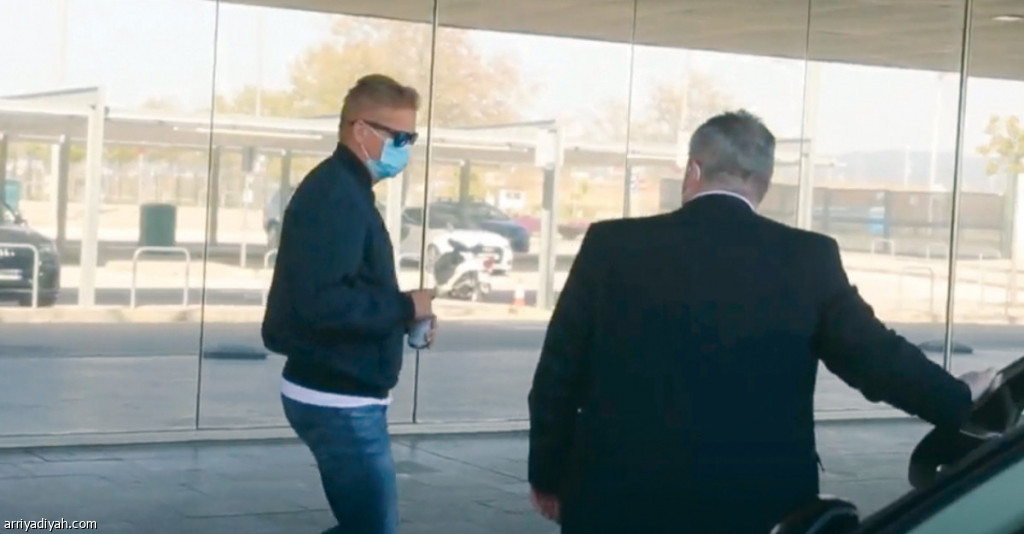 صورة التقطت أمس لوالد النرويجي هالاند مهاجم بوروسيا دورتموند لحظة استقلاله سيارة مع الإيطالي مينو رايولا وكيل اللاعب فور الوصول إلى المطار في مدينة برشلونة الإسبانية(سبورت)