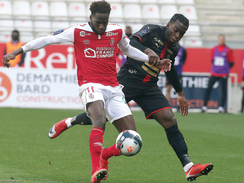 صورة التقطت أمس لديا لاعب ريمس وموسى لاعب رين يتنافسان على الكرة أثناء المباراة (الفرنسية)