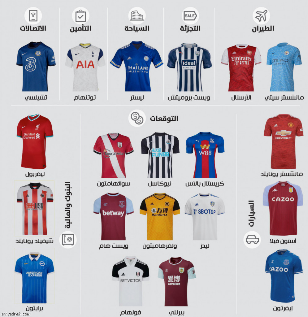 8 قطاعات تتصدر قمصان فرق الدوري الإنجليزي