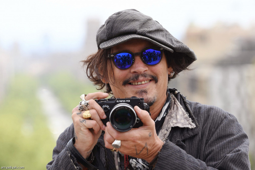 صورة التقطت أمس لجوني ديب الممثل الأمريكي يستعد لالتقاط صور بكاميرته الخاصة أثناء التصوير الفوتوغرافي لفيلم “ميناماتا” في برشلونة مستثمرًا وقت توقف التصوير (الفرنسية)