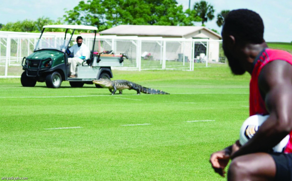اقتحم تمساح تدريبات فريق تورونتو الأمريكي الأول لكرة القدم، في أورلاندو بالقرب من فلوريدا.