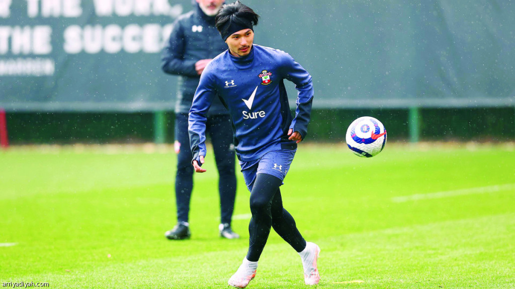 صورة التقطت أمس للياباني تاكومي مينامينو مهاجم ساوثهامبتون المعار من ليفربول خلال الحصة التدريبية لفريقه (المركز الإعلامي - ساوثهامبون)