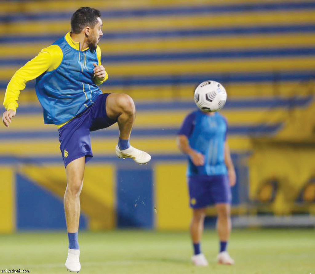 صورة التقطت أمس لعبد العزيز الدوسري جناح النصر يروض الكرة بالعقِب خلال التدريبات الجماعية في مقر النادي في الرياض تحضيرًا لمواجهة الفيصلي غدًا والمؤجلة من الجولة الـ 26 (المركز الإعلامي - النصر)