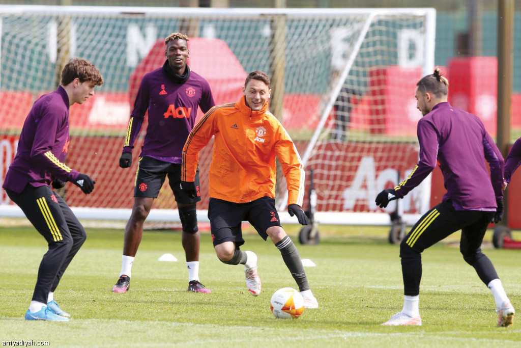 صورة التقطت من الحصة التدريبية لفريق مانشستر يونايتد الأربعاء الماضي (المركز الإعلامي -مانشستر يونايتد)