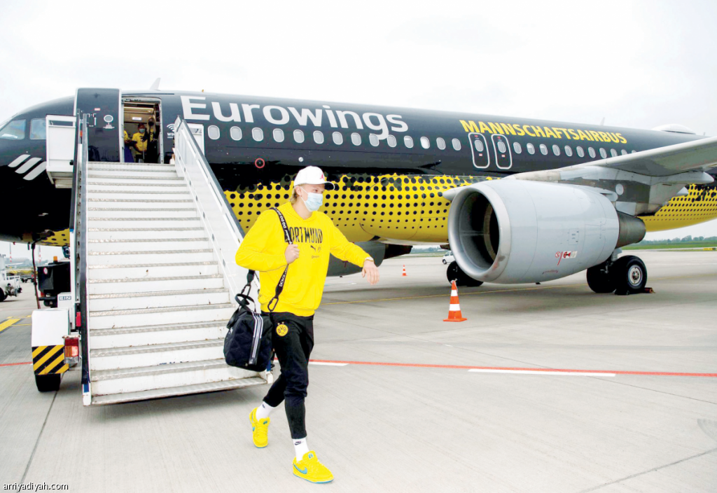 صورة التقطت أمس لهالاند لدى وصوله مع بعثه فريقه إلى برلين لمواجهة لايبزيج اليوم في نهائي كأس ألمانيا (المركز الإعلامي - بوروسيا دورتموند)