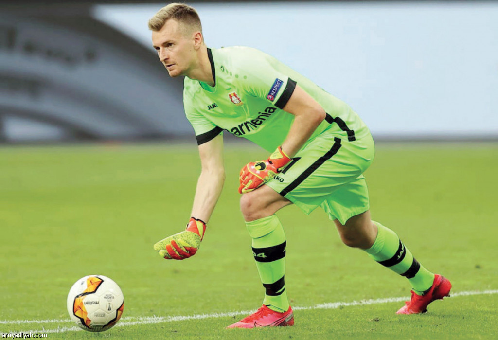 صورة التقطت لهراديتسكي حارس منتخب فنلندا وباير ليفركوزن أثناء إحدى المباريات في الدوري الأوروبي (أرشيفية)