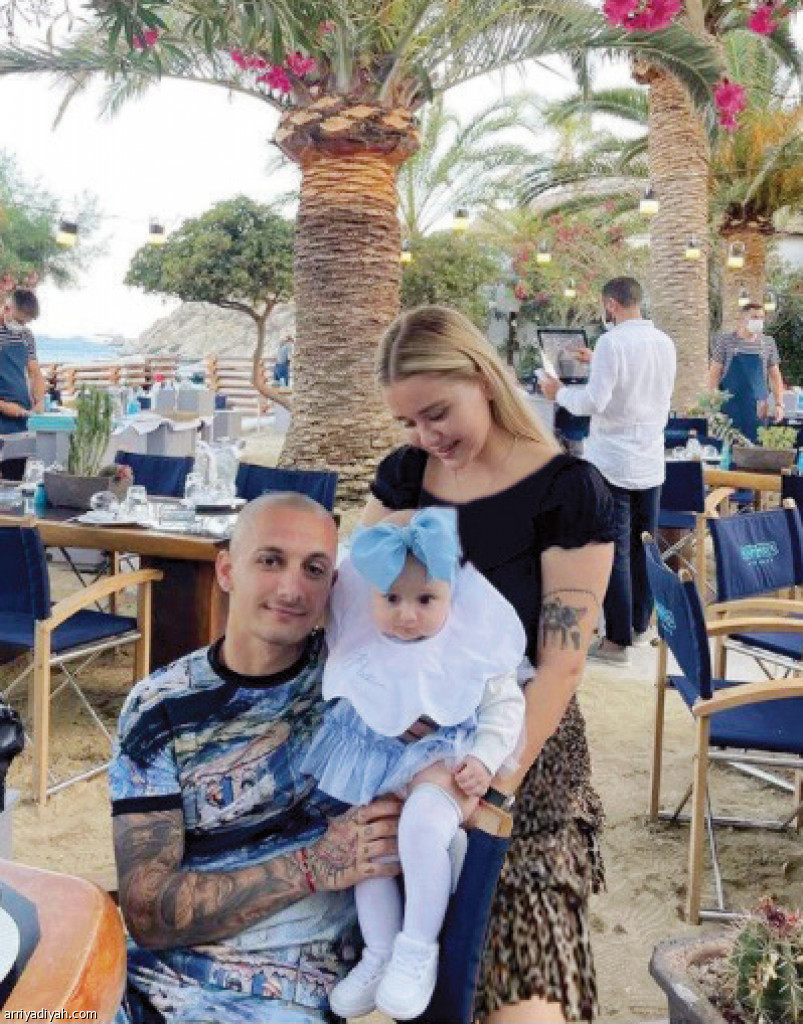 صورة التقطت أمس يظهر خلاها ألكساندرو ميتريتا لاعب فريق الأهلي الأول لكرة القدم يحمل طفلته وبجانبه زوجته خلال قضاء الإجازة برفقة عائلته في اليونان