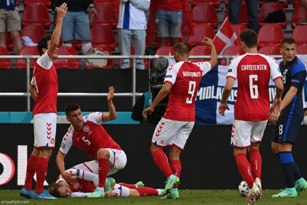 وسقط إريكسن “29 عامًا”، المتوَّج مع إنتر ميلان بلقب الدوري الإيطالي، فجأةً على الأرض قبل انتصاف المباراة في كوبنهاجن، وعيناه واسعتان، وشكَّل زملاؤه دائرة حوله، وظهر عددٌ منهم يبكون.