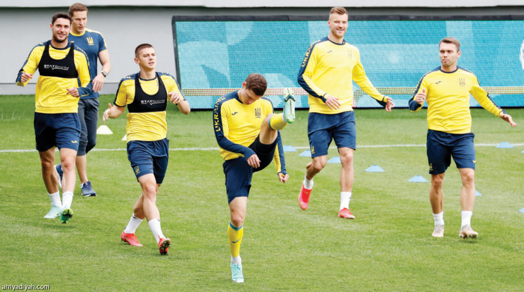 صورة التقطت أمس للاعبي منتخب أوكرانيا خلال التدريبات (الفرنسية)