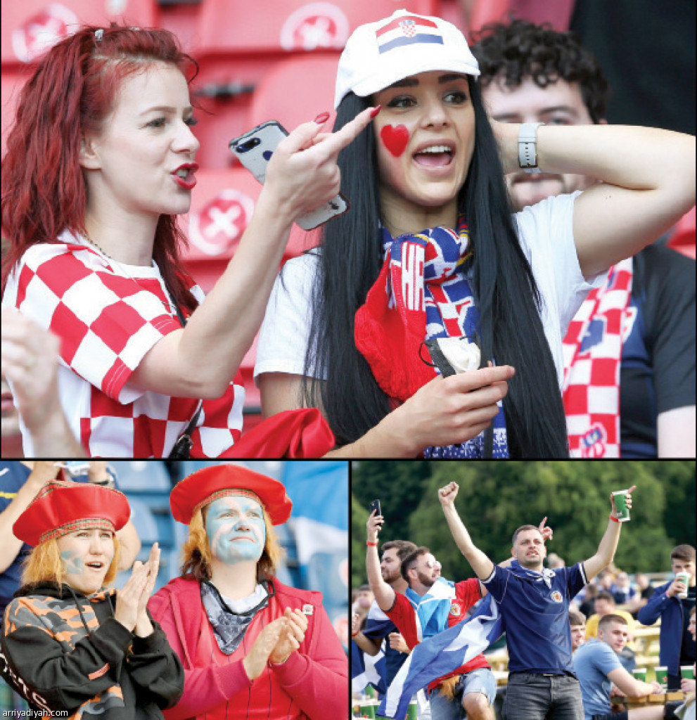 تفاعلت جماهير منتخبي كرواتيا وإسكتلندا مع أحداث المباراة التي جرت بينهما في الجولة الثالثة والأخيرة ضمن المجموعة الرابعة، داخل ملعب هامبدن بارك في جلاسكو وخارجه..