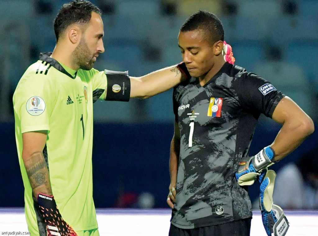 صورة التقطت لأوسبينا قائد المنتخب الكولومبي يتحدث لوليكر فارنيز حارس فنزويلا عقب نهاية مباراة المنتخب في 17 يونيو الماضي (أرشيفية)