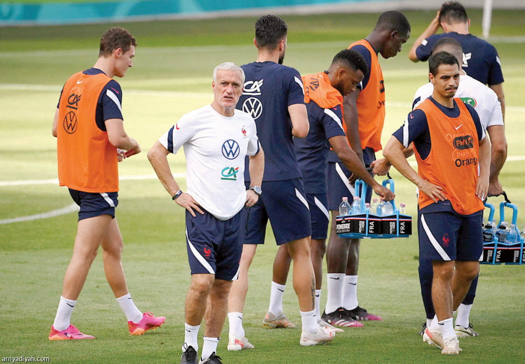 صورة التقطت أمس لديديه ديشان مدرب منتخب فرنسا الأول لكرة القدم خلال التدريبات استعدادًا لمواجهة سويسرا ضمن دور الـ 16 من بطولة كأس أمم أوروبا (الفرنسية)