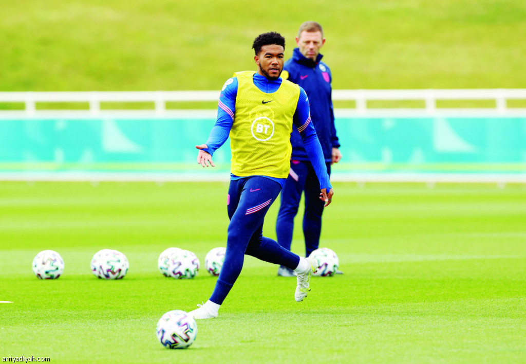 صورة التقطت أمس لريز جيمس، ظهير أيمن المنتخب الإنجليزي، أثناء مشاركته في التدريبات استعدادًا لملاقاة ألمانيا الثلاثاء المقبل (رويترز)