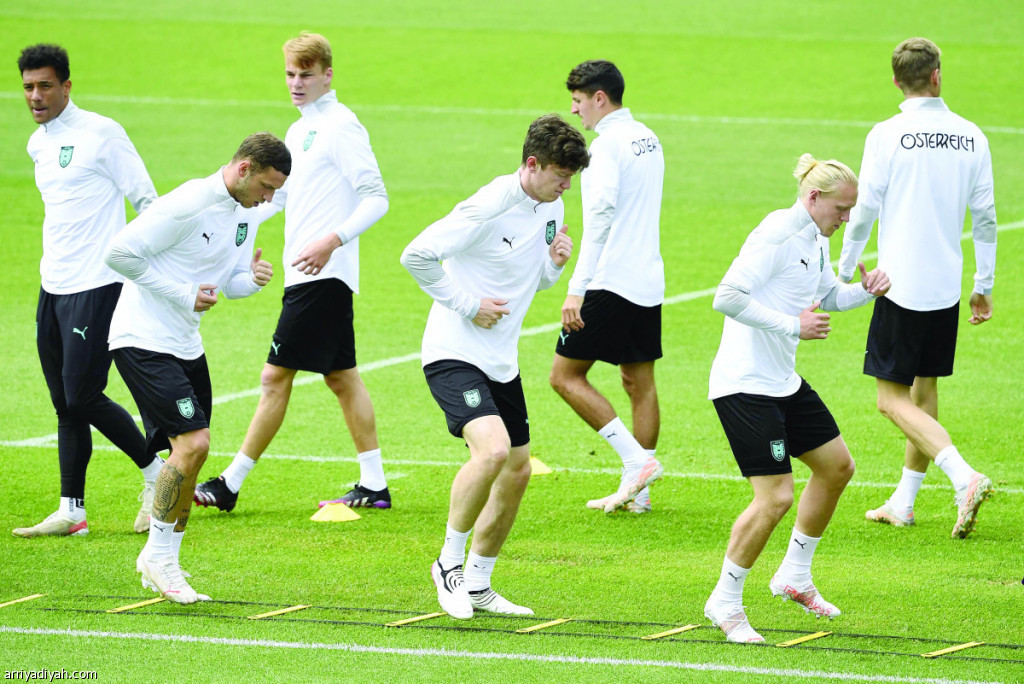 صورة التقطت أمس من تدريبات منتخب النمسا (الفرنسية)