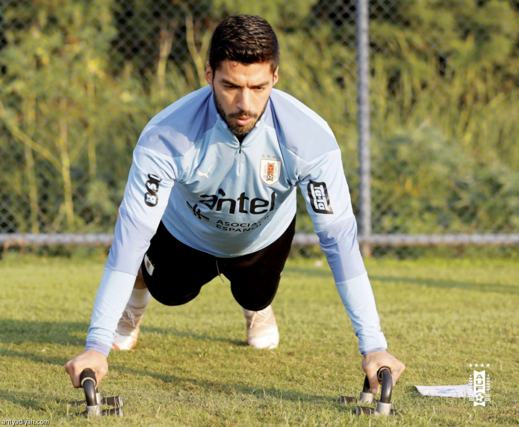 صورة التقطت أمس لسواريز لاعب منتخب الأوروجواي أثناء التدريبات (المركز الإعلامي - منتخب الأوروجواي)