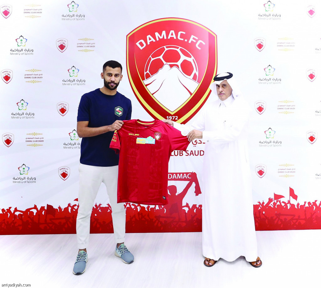 صورة التقطت أمس لأسامة السليم لاعب ضمك الجديد برفقة خليل آل سعيّد عضو مجلس الإدارة (المركز الإعلامي - ضمك)