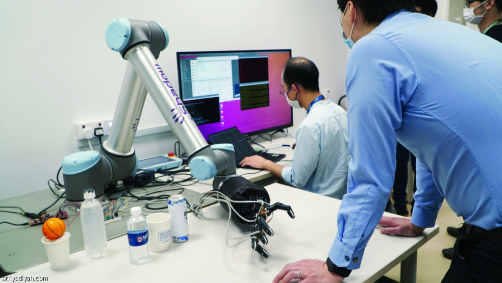 صورة التقطت في 30 يونيو الماضي لباحثَين من جامعة سنغافورة الوطنية خلال تجارب على الإنسان الآلي (رويترز)