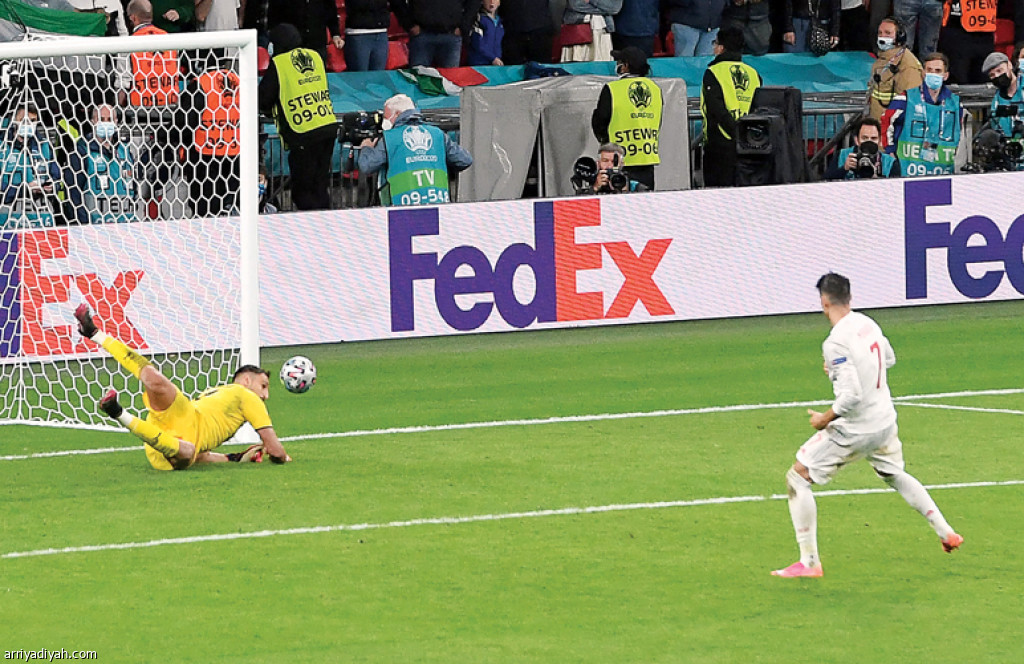 صورة التقطت أمس الأول لحارس مرمى إيطاليا يتصدى لركلة موراتا لاعب المنتخب الإسباني(الفرنسية)